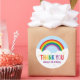 Este brilhante obrigado arco-íris que você cola pode ser personalizado com seu nome, evento ou outro texto.