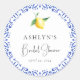 Impressione seus convidados com uma celebração banhada pelo sol com nosso adesivo redondo para chá de panela de noiva com azulejos mediterrâneos e limão. Este modelo personalizável e lindamente projetado captura perfeitamente a essência de um chá de panela de noiva de verão, combinando a elegância atemporal dos azulejos mediterrâneos com o charme fresco e vibrante dos limões. Os padrões intricados de azulejos azuis e brancos combinados com os acentos vibrantes de limão criam uma imagem deslumbrante que define o tom de um evento alegre e sofisticado. Adição perfeita para lembranças/presentes de chá de panela de noiva. Certifique-se de explorar o restante da coleção para criar um chá de panela de noiva coeso que irá impressionar seus convidados!