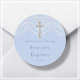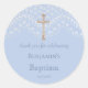 Belo obrigado do batismo você favorece adesivos, apresentando um crucifixo de ouro e um efeito bonito de renda em azul. Pronto para uma personalização fácil.