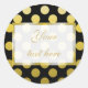 Redondo bolinhas Amarela Dourada no adesivo presente preto