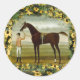 Redondo Cavalo de corrida e adesivo de jóquei