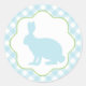 Este é um pequeno adesivo bonito para usar na Páscoa ou durante todo o ano. Ele apresenta uma silhueta de um coelho em uma cor azul pastel em um fundo azul de verificação de gingham.