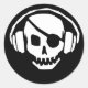 Redondo Crânio com adesivo de olhos e auscultadores