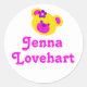 Redondo Crianças nomeadas de ursinho branco rosa adesivo