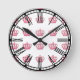 Um relógio bonito o suficiente para uma princesa! As coroas cor-de-rosa adoram o relógio, que também tem algarismos romanos. Bonita para o quarto de qualquer garota. Disponível em dois tamanhos de relógio redondo, ou um relógio quadrado. Copyright Scarebaby Design.