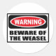 Cuidado com o WEASEL Sticker que pode personalizar em www.WarningSignShirts.com e apresenta um sinal de aviso vermelho e preto e o BEWARE DO WEASEL em letras pretas a negrito para avisar o mundo. Pode também personalizar o seu próprio sinal de aviso Sticker com o texto que pretende.