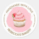 Redondo Cupcake rosa feito à mão com um adesivo de amor