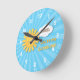 Deixe os pequenos saberem o quanto eles significam para você com este relógio decorativo de parede que diz: "Você é meu Sol!" Design é ilustrado com um belo sol brilhando seus raios solares lançando uma explosão solar no fundo azul. Espaço na pequena nuvem para personalizar com o nome da criança. Fácil de ler os números faciais do relógio branco.