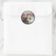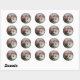 Um adesivo com uma foto de um pote de margaridas e morangos sobre um fundo de madeira. Procure por convites de casamento e mais na Paperie da Jill.