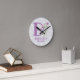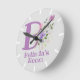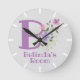 Relógio De Quarto De Crianças. Design apresenta Monograma & Nome com Flores em ambos os lados no estilo pastel de cor de água. O nome de exemplo é Belinda. Altere o nome conforme desejado para qualquer pessoa com um nome que comece com B.