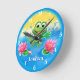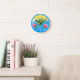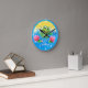 Design de sapo de de salto do relógio da Criança Personalizada. Blues Mude o nome - é tão fácil! Um design colorido e divertido de salto de Sapo neste relógio inteligente de parede. Perfeito para berçários. Por favor, veja a fúria de aniversário de Sapo que saltou no cheio também.