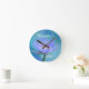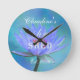 Ela Somou Sombras do Relógio Lily Azul-Água. Escolha redondo ou quadrado com as mãos pretas ou cinzas. Design e lírio de água por Claudine Boerner com fundo modificado a partir da foto lançada sob licença CC0.