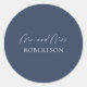 Redondo Elegante Adesivo de Sr. & Sra. – Fundo Azul Marinh