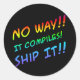 Programando adesivo de humor - De jeito nenhum! Compila! Envie! - adesivo preto com letra arco-íris.