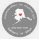 Estado exclusivo do ALASKA Novo adesivo de etiqueta de endereço residencial definido em um fundo de cinza com um cardíaco e avião vermelho.