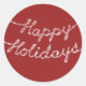 O adesivo Feliz Feriados, escrito em luzes cintilantes sobre fundo vermelho de amora, acrescenta um toque festivo a pacotes, presentes ou envelopes.