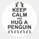 Redondo Fique calmo e abraça um adesivo de pinguim