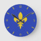 Um relógio de parede azul real com um Fleur de Lis Dourado: uma decoração elegante para casa ou escritório!
