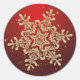 Redondo Floco de neve dourado em adesivo de Natal vermelho