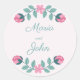 Redondo Flores e folhas adesivo rosa de casamento