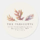 Criada a coordenar Lea Delaveris com as coleções de Janto Reparo e Obrigados de outono, esta etiqueta de endereço de retorno e o selo do envelope apresentam folhas coloridas festivas em queda, juntamente com a tipografia simples e clássica.