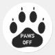Um design gráfico de uma grande pata de cão com o texto Pws Off.