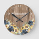 Este relógio cheio de girassol de madeira falsa é perfeito para a sua cozinha ou sala de estar.