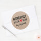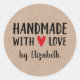 Um adesivo rústico "feito à mão com amor" de 3 polegadas personalizado em um fundo cor kraft. Faça-o seu adicionando seu próprio nome. Um bonito toque final para todos os presentes feitos à mão. Projetado para você pelo Blackberry Boulevard.