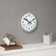 Este relógio da sala de aula oferece um design muito colorido. Um gráfico de lápis coloridos borda fora do relógio e um fundo branco e lacrimogêneo. O texto personalizado permite adicionar o nome do professor.