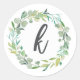 Use este design de aspecto limpo com uma coroa de folha verde de eucalipto e uma letra K de monograma para várias ocasiões — favor bolsas, selos de envelopes, etc.