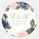 Redondo marinho e blush bloqueie adesivo de casamento