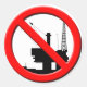Design de vetor gráfico de uma plataforma petrolífera offshore com um símbolo vermelho de NO numa variedade de produtos. Arte original: Direitos autorais Charmaine Paulson