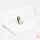 Inclui 20 adesivos pequenos em uma folha. Ilustração romântica de um casal recém-casado se beijando com a noiva segurando um buquê, perfeito para decoração com tema de casamento.