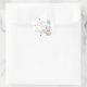 O primeiro adesivo de aniversário é decorado com um ursinho fofo, balões e um arco-íris.