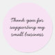 Um adesivo rosa pastel simples para os clientes do obrigado para dar suporte à sua pequena empresa. Uma design de menina bonita para pequenos negócios.