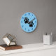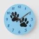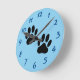 A pata do cão de desenho impresso a preto sobre fundo branco. Relógios decorativos para casas e empresas como compradas para animais de estimação. Versão azul do bebê. Ideia de presente para amantes de cães.