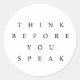 Um adesivo de designer simples e cativante para se lembrar (e de todo mundo ao seu redor) de pensar antes de falar!