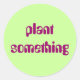 adesivo de círculo verde, texto rosa-escuro roxo: plantar algo