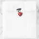 Um doce filhote preto e branco tem um grande coração vermelho. Um adesivo perfeito para o Dia de os namorados.