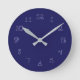 Este relógio azul de fundo profundo tem o logotipo http://fabricatedframes.com do Kristie Hubler inspirado na fonte do tecido, com o tecido girado na forma de números (também letras, designs de maiúsculas e minúsculas disponíveis), em uma cor de marinho claro em um fundo azul profundo do marinho. Excelente para artistas de fibras, mantas de retalhos, torres, designers, aqueles na superfície design / design de tecido / designers de têxteis / colchetes. Tecido protegido por Kristie Hubler.