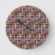 Design geométrico de Mauve e abstrato dourado, acentuadas por minúsculas flores cor-de-rosa, em quadrados dourados, combinam este relógio único de parede com outras peças de sotaque caseiro em loja