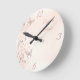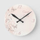 Relógio cor-de-rosa redondo com borboletas, espirais de flores e texto "Carpe Diem"