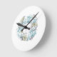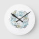 Adicione um toque de calor às suas paredes com este bonito relógio floral com flores azuis empoeiradas e verdes pálidas no estilo da coroa.