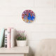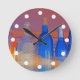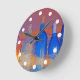 Este relógio personalizado é uma maneira elegante de marcar o tempo. Apresenta uma pintura digital de garrafas de vinho sentadas na janela de uma adega ocidental do Colorado.