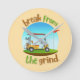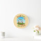 Um relógio que diz "Pausa da Rotina" com uma imagem de um carrinho de golfe estacionado perto de um buraco de golfe é um design relaxante e esportivo, frequentemente usado por entusiastas de golfe ou aqueles que buscam uma pausa de sua rotina diária. Sugere um desejo de escapar dos estresses da vida cotidiana e desfrutar do esporte tranquilo e desafiador do golfe.