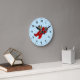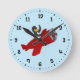 Relógio com design com ilustração de um pinguim que voa num plano vermelho; ilustrado por Radka Kavalcova/MaxiHarmony