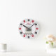 Um relógio com ilustração de um fogão retrorbranco da cozinha. Personalize com seu nome acima da ilustração. O relógio apresenta números brancos em pontos vermelhos e pretos.