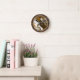 Relógio de parede ao estilo ocidental, com uma fotografia de um pino rolante e massa. Gráficos de uma aparência de madeira e estrutura de arame farpado rodeiam as bordas externas do relógio. Personalize para adicionar qualquer texto que você quiser.