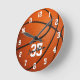 Este relógio de basquete esportivo para rapazes ou raparigas apresenta um gráfico de basquetebol simples com números superlotados - personalize com o nome do jogador e o número de camisa - por katz_d_zynes