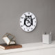 Design do relógio de parede preto e branco. Você pode personalizar este relógio de parede com qualquer texto de sua escolha. Se precisar de ajuda para personalizar, entre em contato conosco através do link desta página. Relógio de design de coruja.